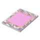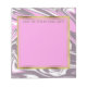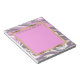 Personalised notepad with a pink, grey and white marble design with white and gold. Text, font, font size, colour, and placement are completely customisable.