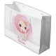 Make gift-giving even more special with this adorable, personalised kitten gift bag. Featuring a charming kitten sitting on a pink crescent moon, alongside the name “Magdalena” (or your own custom name), this gift bag is perfect for baby showers, birthdays, or any celebration. Its delightful design and pastel pink tones add a soft and sweet touch to any present, making your gift stand out in the crowd.