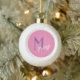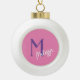 custom pink monogram name personalize minimal ceramic ball christmas ornament