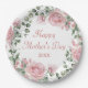 Custom Pink Rose Floral Happy Mothers Day Paper Plate