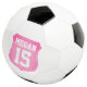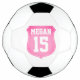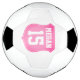 Custom pink soccer ball gift for athletic girl. Personalised Christmas or Birthday gift idea for sporty boys and girls who love playing soccer / football. Athletic typography design with green shield emblem logo. Add your own name, lucky number, age, jersey number, sports quote or monogram. Make your own fun party favour for a children's Birthday party. Unique present for grandson, son, grandchild, granddaughter, daughter, nephew, cousin etc. Also great as thank you gift to futbol coach, soccer mum, soccer dad etc.