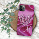 Contemporary faux shiny diamond heart on a bright hot pink coloured printed image of wavy satin fabric. With room to customise or personalise with a monogram of your choice. Beautiful, modern, and cool cover for the trend-savvy and art-loving hip trendsetter, artsy motif lover who wants to protect their phone from dust and dirt, wear and tear. This design is available in Apple iPhone 6, 7, 8, 10 or X, XR, XS, 11, 12, 13 Mini, 14, 15 Plus, and Pro Max cellphone cases. Show off your style, look fashionable trendy, and feel stylish with a unique design on a mobile device accessory of your choice.