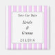 A custom Save the Date magnet with pink stripes in light pink, dark pink and white. Click Customise It to change fonts, sizing, background colours and more, even save your design for later.