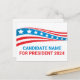 Customise your own political campaign postcards by adding your own name or another politician under these stars and stripes in red, white, and blue. Add a custom name for American president in 2024 or another political office in the USA.
