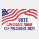 Customisable political campaign candidate sticker with the American flag on top of your text in red, white, and blue. Add your choice for president or other political office in the 2024 election. Bold custom text.