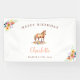 Welcome your birthday guests in style with this custom pink floral banner featuring a cute pony and script typography, perfect for a young equestrian, horse lover, or a pony-themed party. Personalise it with your own text