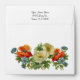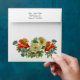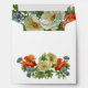 Custom square envelopes with script letters on the back for your return address and pretty vintage floral art of white and red poppies with blue cornflowers.
