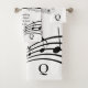 Elegant black and white Christian Scripture bath towels, designed with musical notes. There is customisable text that says LET EVERYTHING THAT HAS BREATH PRAISE THE LORD, which is based on Psalm 150 and which you can personalise to suit your requirements. In the bottom right hand corner, there is a customisable MONOGRAM. Available in other colours and with matching items.