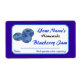 The canning stickers say, "Your Name's Homemade Blueberry Jam." Add your name to the label template to personalise. Change the words to marmalade, jelly, or whatever.