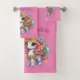 This bathroom towel set features a super cute unicorn and your daughter's first name.