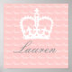 This pretty print features a pattern of white "Princess" text on a blush pink background and a large white crown. Easily customise this print by adding your name or the name of the special Princess in your life. The font, font size and font colour are also customisable, simply click "Customise It", then click on the "Design" tab and adjust items as necessary. Optional mats and frames are also available for purchase. PLEASE NOTE: This print is available in various sizes, however, some sizes may cut off the crown and/or text. To avoid disappointment, please pay close attention to the size you select, it will print *exactly* as you see it appears on the screen.