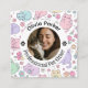 Elevate your pet care business with this adorable square business card designed specifically for pet sitters, dog walkers, and animal caregivers. The front features a circular photo frame to showcase you with a furry client, surrounded by a delightful "kawaii" style pattern of colorful cats and spring blossoms.