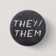 Custom button featuring any pronouns on distressed chalkboard background!