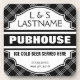 This funny personalised bar coaster set makes the perfect wedding or anniversary gift for beer lovers! Add the groom & bride's or husband & wife's first initials and last name, and their wedding date to create a unique keepsake that is sure to bring smiles for years to come. Bold black and white criss cross plaid type pattern in the background, and vintage style outlined sign shape with fancy copperplate style and bold capital text areas for a realistic pub feel.