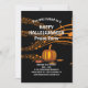 CHRISTIAN ALTERNATIVE HALLOWEEN Invitation, with a fun novelty design that says YOU ARE INVITED TO A HAPPY HALLELUJAHEEN PRAISE PARTY in white typography against a rich black background. The design shows an orange pumpkin and a variety of musical staves. At the bottom there is CUSTOMIZABLE text where you can enter your date, time and venue. On the reverse, you can enter your event details by clicking the Personalise This feature. Currently no text is shown on the reverse, but the option remains to add details, eg. child's birthday party or other description, etc. Ideal to use for anti or alternative Halloween events. Matching party supplies and items are available for your Christian events - either at home or at a public venue.