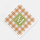 Farmhouse country style autumn pumpkin orange and off-white ivory gingham plaid pattern, with the option to customise or personalise with a family name monogram of your choice. Fun pretty fall coloured paper napkins for on your in fall colours decked table and get in the mood for fall season, the Thanksgiving holiday and Halloween.