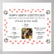Custom Puppy Birth Certificate: Personalised Keepsake for Your Furry Friend's Special Day!