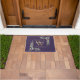 Elegant personalised eucalyptus watercolor greenery floral monogram name doormat featuring a gold monogram initial on a purple background. Designed by Thisisnotme©