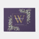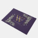 Custom Purple And Gold Monogram Greenery Floral Doormat