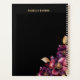 Elegant Purple Golden Floral Black Planner with your customisable text like name, title or company.