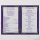 This romantic 8.5"x11" purple, lime green, grey, and white floral wedding program has a PRINTED ON ribbon and bow with a pair of PRINTED diamond jewel and FAUX glitter and printed diamond joined hearts brooch on it, along with ornate scrolled borders on the back and inside pages. There is also a verse that says "This day, I marry my best friend. The one I live for, laugh with, dream with, love" on it. It is designed to be folded down the centre. Be sure to make sure that the text is centred where you want it, as everything will print as you see it on your monitor. All the text is customisable.