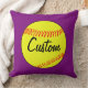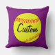 Custom Purple Softball Throw Pillow: Create your own customised softball throw pillow by typing any text in to the text box. These make great gifts for softball players, coaches and fans.