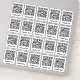 Set of 20 custom QR code stickers. Custom text. Sticker size approximately 1.39"x1.74" with rounded corners.