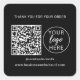 Create a sleek and professional impression with our black square business sticker, perfect for packaging, promotional materials, or customer thank-you notes. Customers can personalise the sticker before checkout by adding their company logo, a thank-you message, QR code, social media handle, and website. Ideal for businesses looking to enhance brand visibility and connect with customers in a modern, stylish way.