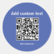 Custom Qr code sticker for customers, url, website promotion. Promotion, marketing signs for your website, commercial offers, company products, packaging, business service, landing page. Blue simple qr code minimalist design.