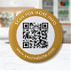 Custom QR Code Text Black White Gold 6 Cm Round Badge