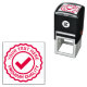 Custom quality approval checkmark seal self-inking stamp. Personalise with custom 100% guarantee text or business name. Circle stamp of approval design with tick ✔. Great for official documents, authentic diplomas, certificates, tags and more. Colours and font can be changed. Red example.