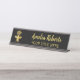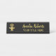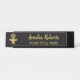 Custom, personalised, professional, modern, classy, stylish, elegant, business office rose gold classic black and faux gold script / typography, metal desk sign name plate.