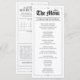 A stylish black and white Quinceañera menu designed with a modern, newspaper-inspired layout. Personalized with your event details, this interactive menu adds an elegant touch to each place setting while enhancing the overall table décor.