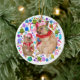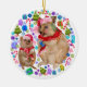 Festive Quokka family custom ceramic ornament with retro-inspired watercolor smiling kangaroos on a white background. These Australian Christmas kangaroos are perfect for Christmas gifts, or tree ornaments, or gift-giving, illustrated by Jo Story of Sketchbook Designs. This happy and fun Christmas ornament would make the perfect keepsake this Christmas.