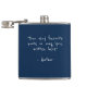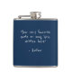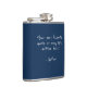 Create your own custom quotation flask, whether it's to add humour to your day or create a unique a gift they won't forget. This design features minimalist customisable text in simple, hand-written typography on a navy blue background.