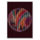Elevate your event with this bold, dramatic table card featuring a circular striped design bursting with saturated rainbow hues, surreal domes, and whimsical trees—all against a rich, deep burgundy background. The optical stripe illusion draws the eye while the vivid colours make every table pop, whether it’s an upscale wedding, cultural celebration, gala dinner, or festive holiday banquet.