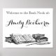 A custom poster with custom block letters reading "Welcome to the Book Nook of" and script letters for your name, and a border of vintage books and a writing quill. Customise it to change fonts and more.