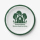 This forest real estate company paper plate is perfectly customised for a realtor who is having an open house near the wilderness or woodlands. The green silhouette of trees behind a log cabin home and personalised with your agent and realty business name for marketing in the backwoods.