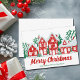 This cute custom real estate holiday card is perfect for realty business marketing. Customize these Merry Christmas cards with your company name under the red houses covered in winter snow and lined with festive green trees.