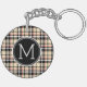 Custom Red Beige Black White Squares Plaid Pattern Key Ring