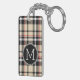 Custom Red Beige Black White Squares Plaid Pattern Key Ring