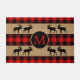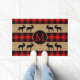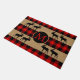 Beautiful contemporary black and red chequered plaid pattern. Stylish rustic style doormat with room to customise or personalise with your family name monogram. Original decor accent for decorating the front porch or doorstep of your country cottage house, log cabin, mountain lodge, fishing camp, lake or river vacation home.