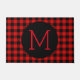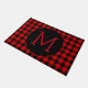 Beautiful contemporary black and red chequered plaid pattern. Stylish rustic style doormat with room to customise or personalise with your family name monogram. Original decor accent for decorating the front porch or doorstep of your country cottage house, log cabin, mountain lodge, fishing camp, lake or river vacation home.