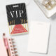 Create an atmosphere of Hollywood glam at your sweet sixteen with these personalised VIP passes. Customisable badge features a red carpet and velvet rope background with "VIP" and two lines of custom text. Add additional text to the reverse side, topped with blush and gold confetti dots. Badges can also be personalised with each individual guest's name if desired.