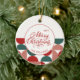 Custom Red Christmas Geometric Pattern Photo Ceramic Ornament