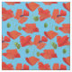 Custom Red Field Poppies Sky Blue Floral Fabric