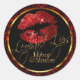 Custom - Red Glitter Lips on Leopard Print Classic Round Sticker