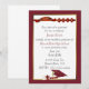 Elegant graduation party invitation, done with a white background and a red and gold tone frame. Graphics of a red and gold banner, across the top, and a diploma and red mortarboard cap, on the bottom. Personalise the year and rest of the invitation's text to suit your party needs.