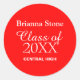 True red graduation sticker with optic white text.The graduate's name is written at the top. Class of and the graduation year is in the centre. The high school is at the bottom. This custom red and white graduation sticker is designed to be easy to be personalised.