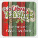 Beautiful, unique, classic, trendy, pretty and decorative Christmas holiday greeting card with a classic Holiday dark red, forest green, and white coloured 'Merry Christmas' quote text on a rustic weathered wooden country cottage farmhouse style planks pattern background. With room to easily customise or personalise with your company or family name.